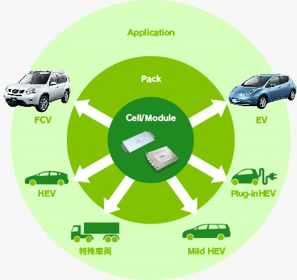 今回の契約対象となるAESCは、資本準備金2億4500万円で日産自動車、NEC、NECトーキンの合弁により、神奈川県相模原市に設立されました。AESCは自動車用高性能リチウムイオン電池の開発などを事業内容としてしており(図1)、2010年9月からはHEV用バッテリーの本格的な量産を開始、同年11月からはEV用バッテリーの本格的な量産を開始しています。