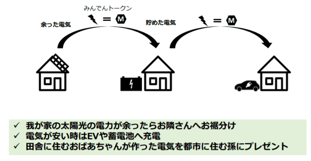 図3 トークンによるP2P電力シェアリングイメージ 出典:みんな電力k