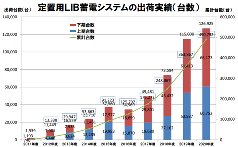 定置用LIB蓄電システムの出荷実績(台数) 出典:一般社団法人 日本電機工業会