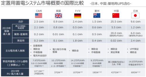 定置用蓄電システム市場概要の国際比較 出典:資源エネルギー庁