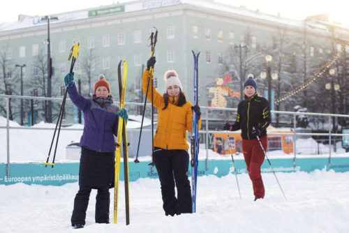 シティスキーとは、市が無料でスキーを貸出し、スキーで市内移動できるものです。FISノルディックスキーワールドカップ・ラハティ大会が始まった1月22日から試験導入を開始しました。スキーはフィンランドで幅広い世代に親しまれています。