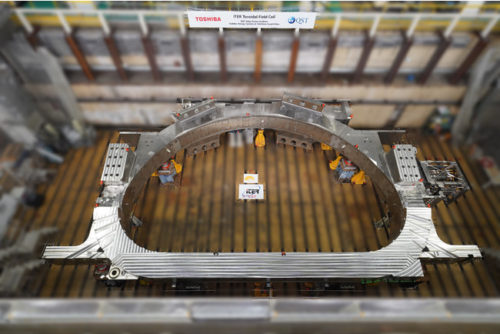 東芝エネルギーシステムズは、2021年6月に、国立研究開発法人量子科学技術研究開発機構より受託し製造している、核融合実験炉イーター(ITER)向けの世界最大級(高さ:16.5m、幅:9m、総重量:約300トン)のトロイダル磁場コイル初号機が完成したと発表しました。