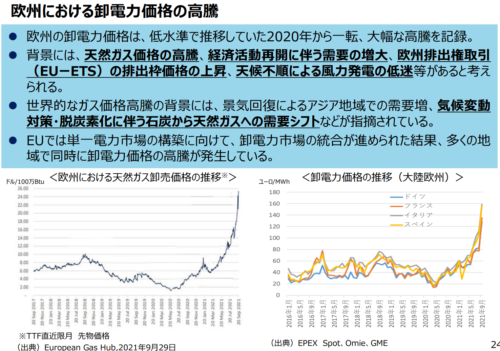 欧州における卸電力価格の高騰 出典:資源エネルギー庁